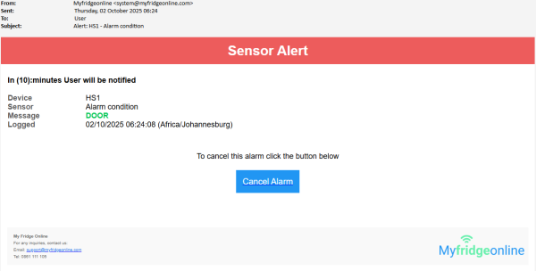 Alerts will now be dispatched to the users in the alert group when the HS1 alarms are triggered.