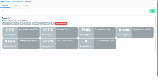 The Overview tab contains parameter cards and chips. These can be filtered by status using the drop down menu.