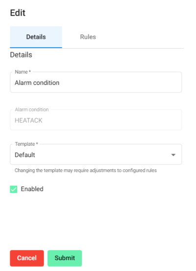 - Click on the 'ALRM' chip then select edit from the popup menu.
