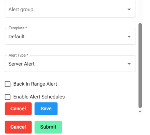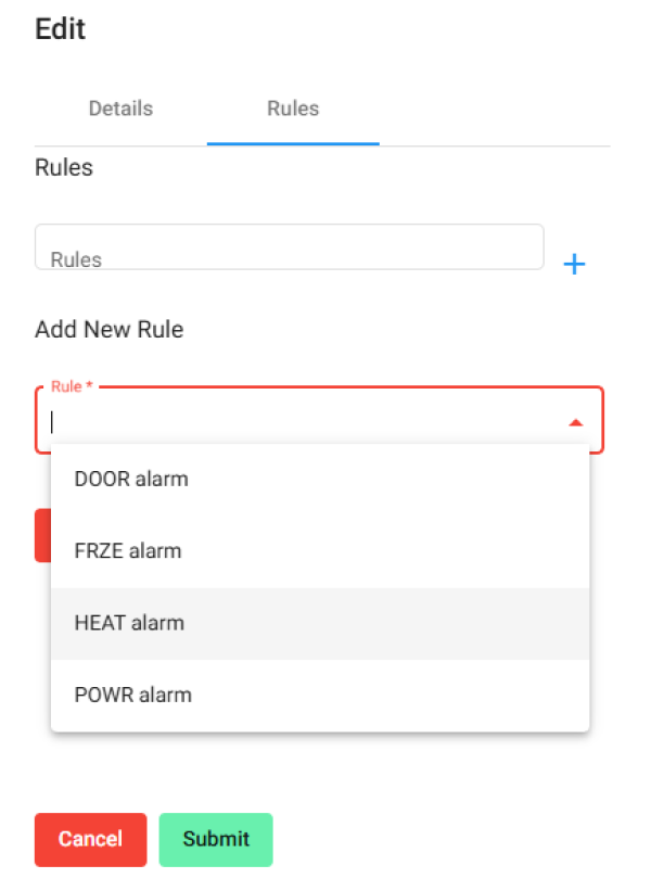 Alerts can be configured by clicking on the rules tab. Rules can be applied to a parameter to configure the server to dispatch alerts when the specified condition triggers.