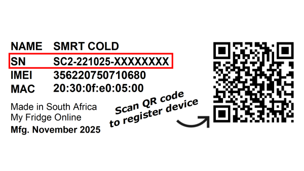 - In order to register your device, scan the QR code on the right side of the label. You will then be redirected to the device registration page.