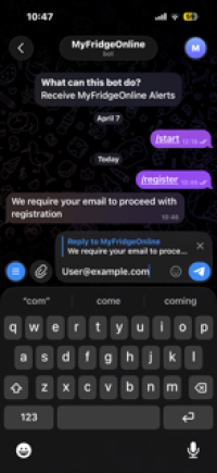 This guide explains how to set up and use the MyFridgeonline Telegram bot to receive alerts.