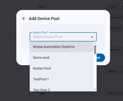 Simply select the device pools you wish to allocate to the selected users and submit when done. Multiple device pools can be selected.