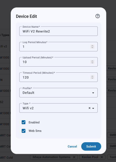 This is an old revision of the document! Editing A Device Navigation The Device Edit dialog can be accessed from the Devices page. Overview Here you can edit your device information as well as set alert groups. Clicking submit will complete the edit.