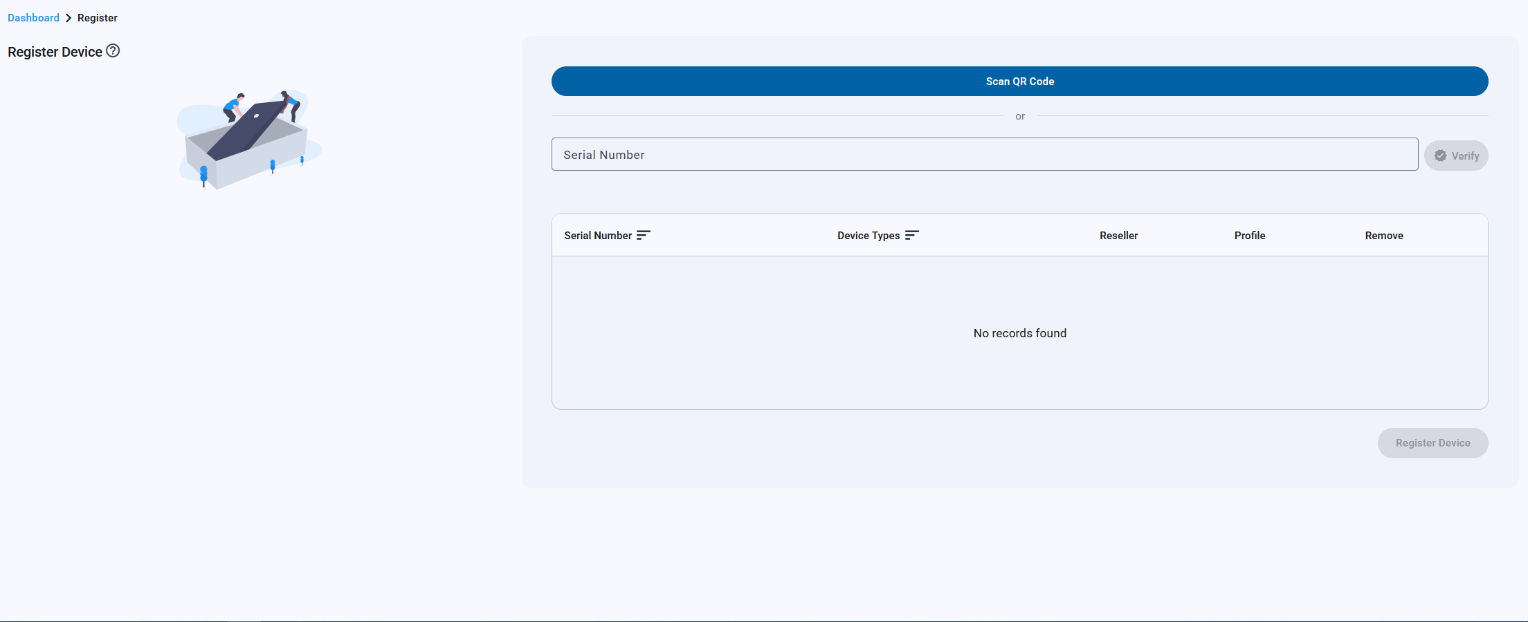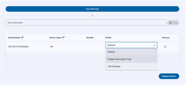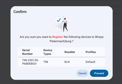 The serial number will then be entered into the table. Step 1 and 2 can be repeated if multiple devices are to be registered. Once complete click 'Register Devices' to complete registering devices to your account. A confirmation dialog will appear to confirm your registration
